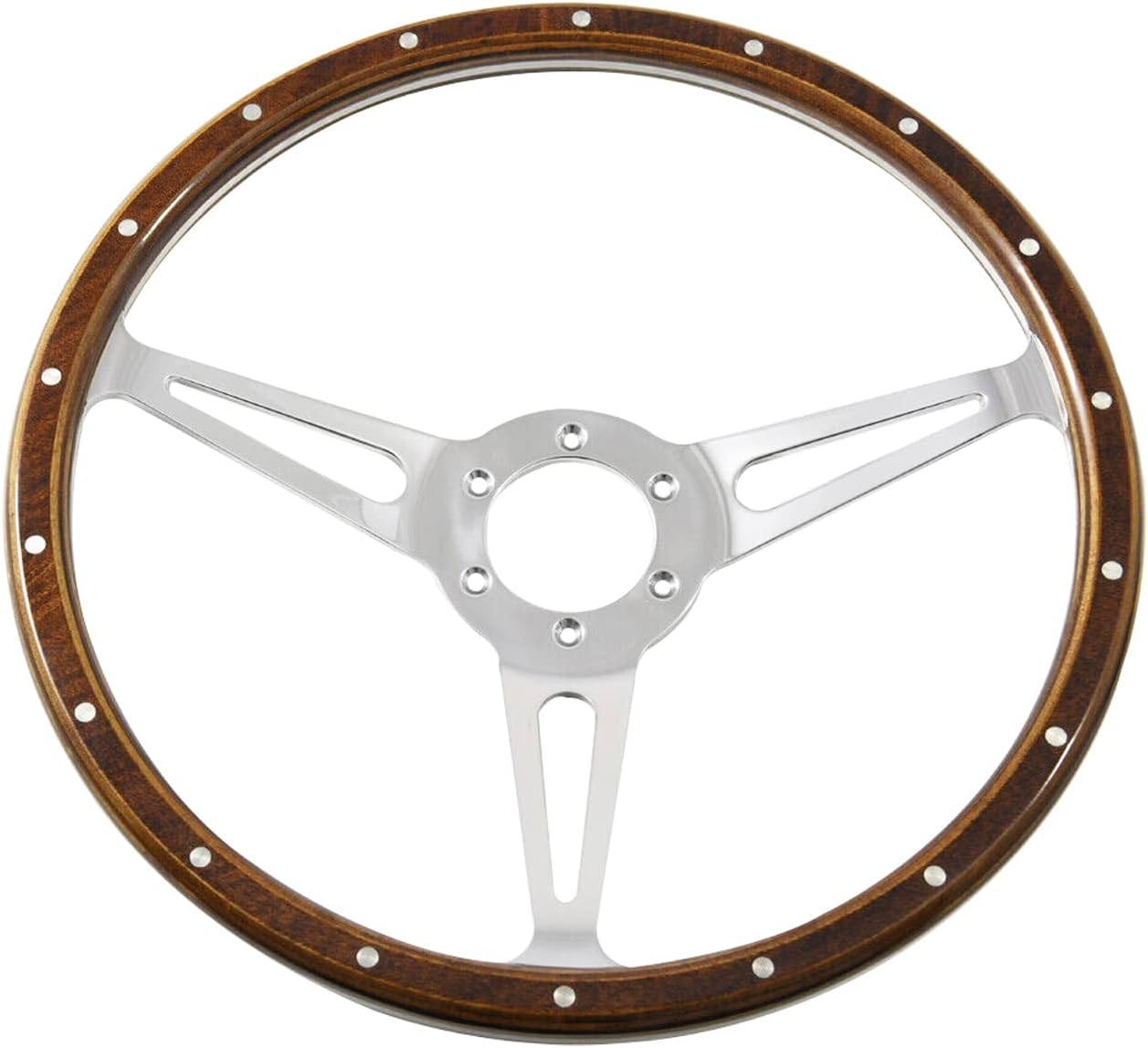 The Flashpower 15” Classic Wood Steering Wheel Riveted with Horn Button is a popular choice for classic car enthusiasts who want the vintage look for their vehicle. The steering wheel is made of high-quality wood with polished spokes, making it perfect for those who appreciate the classic aesthetic. One of the advantages of this steering wheel is its compatibility with multiple adapters, including 6-bolt adapters from MOMO, SPARCO, and OMP. Adapters for specific car models are also available, such as the 6062A adapter for GM/Chevy Splines or the 6161A adapter for Ford cars. However, adapters are not available for some models, such as the 1972 Oldsmobile Cutlass or the 2010 Club Car Precedent. The steering wheel has received mixed reviews from customers. On one hand, some customers have reported that the steering wheel is of high quality, has a great finish, and feels nostalgic in the hand. On the other hand, one customer reported that the steering wheel snapped in half after a sudden stop, which raises concerns about its durability. Another customer complained about the lack of an adapter for their car model. In summary, the Flashpower 15” Classic Wood Steering Wheel Riveted with Horn Button is a great choice for those looking for a vintage look for their classic car. However, customers need to ensure that the steering wheel is compatible with their car model and may want to exercise caution about its durability.